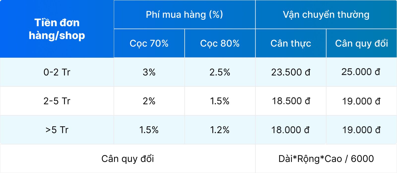2. Phí mua hàng và phí vận chuyển cân nặng